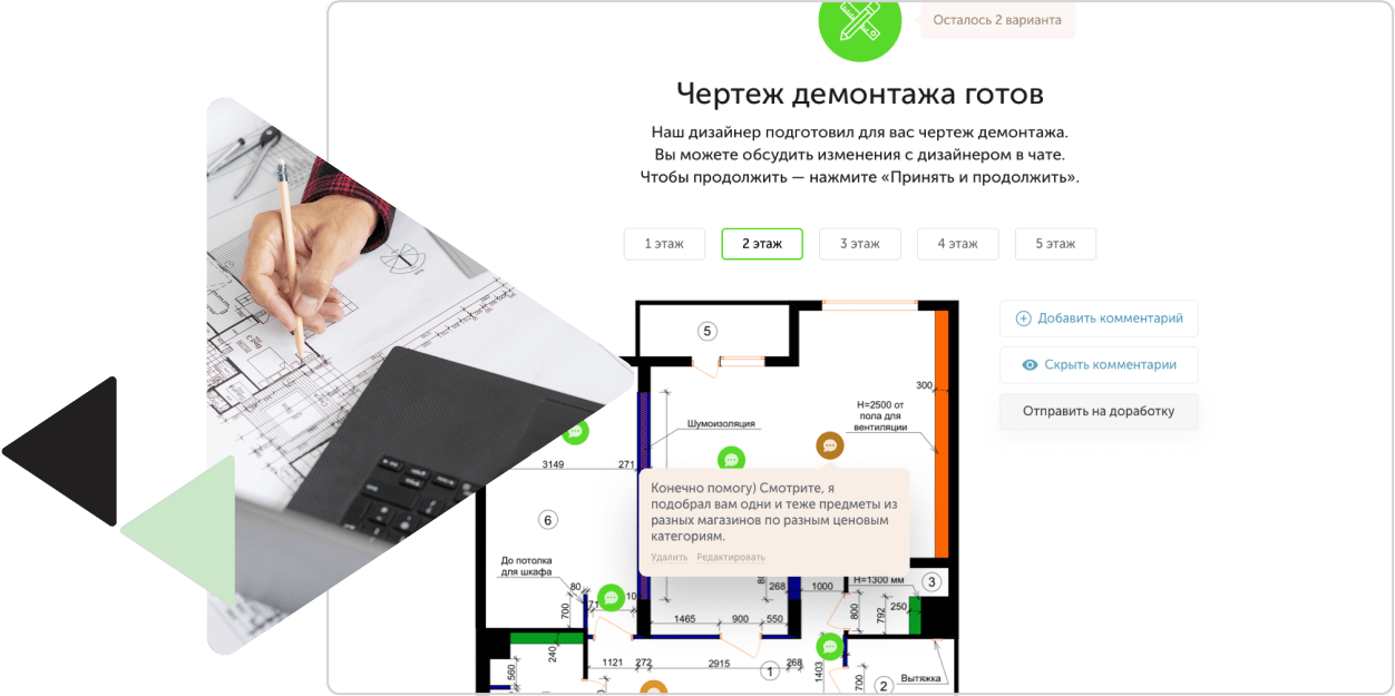 После завершения всех этапов проектирования, при желании, вы можете заказать услугу авторского надзора. Это позволит вам быть уверенными в том, что реализация проекта проходит в точном соответствии с разработанной документацией.