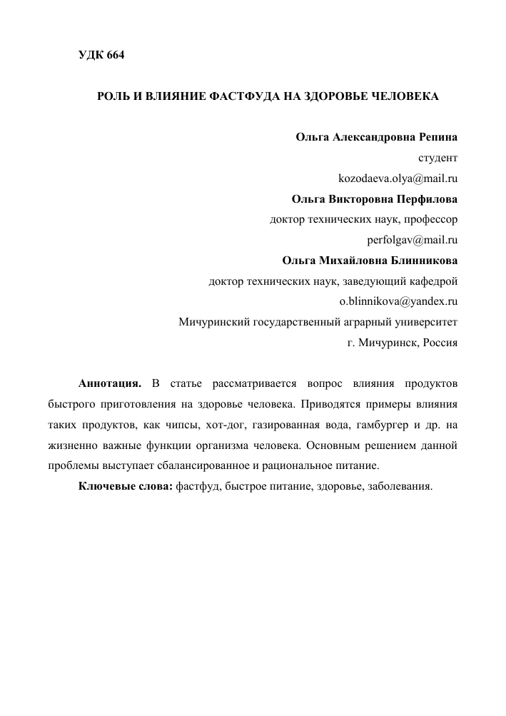 - Краткосрочные и долгосрочные последствия употребления фаст-фуда